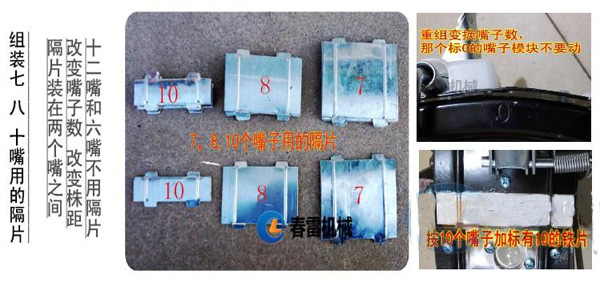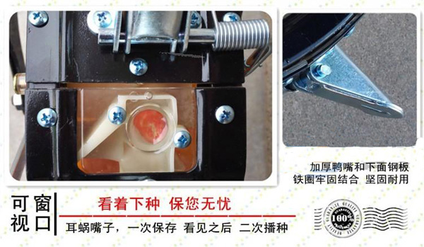 1、可以增減嘴子調整株距、根據籽的大小更換種輪。